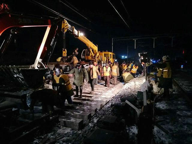 2018年2月末,經(jīng)過(guò)10幾天的冬季休整,哈佳項(xiàng)目部頂著料峭的寒風(fēng)復(fù)工了,項(xiàng)目部組織工程、安質(zhì)、物資設(shè)備及兩個(gè)工區(qū)、施工隊(duì)等多次召開(kāi)專題推進(jìn)會(huì),將剩余工程量劃段劃片并細(xì)化到點(diǎn),專人負(fù)責(zé)組織推進(jìn),2018年3月27日凌晨3時(shí),Ⅲ級(jí)封鎖作業(yè)打響,經(jīng)過(guò)175分鐘的艱苦鏖戰(zhàn),1、3、4、5線及其兩側(cè)岔區(qū)相關(guān)道岔、相關(guān)電務(wù)設(shè)備宣告開(kāi)通,至此,600多天的奮斗告捷,佳木斯站場(chǎng)1—12線全線開(kāi)通!
