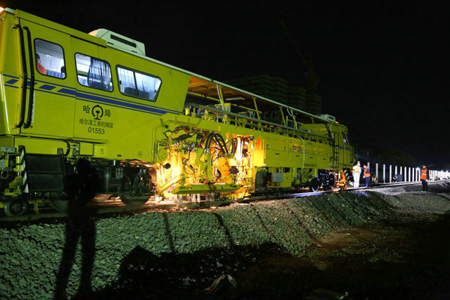 時(shí)間能磨平人的棱角,也能磨滅阻礙。隨著施工進(jìn)度的不斷推進(jìn),哈佳項(xiàng)目部迎來(lái)了8至12線關(guān)鍵的工期節(jié)點(diǎn),2017年4月28日,近600名作業(yè)人員、近40臺(tái)大小設(shè)備一齊沖進(jìn)預(yù)定線路,人工抬軌的號(hào)子聲、鐵鍬砟石的碰撞聲、機(jī)械設(shè)備的轟鳴聲此起彼伏。斷軌飛濺的鋼花、作業(yè)工人衣服上的熒光帶、防護(hù)員手里的探照燈在夜空中照亮了線路,在爭(zhēng)分奪秒的緊張搶?xiě)?zhàn)氣息中平添了一抹建筑工人獨(dú)有的韻味,經(jīng)過(guò)15小時(shí)30分的激烈鏖戰(zhàn),佳木斯站場(chǎng)新建8至12線工程順利完成轉(zhuǎn)線施工任務(wù)。時(shí)間悄悄地走,佳木斯站場(chǎng)全線開(kāi)通時(shí)間也逐漸的接近。6—7線于2017年11月30日順利開(kāi)通,2線于2018年12月16日順利開(kāi)通。