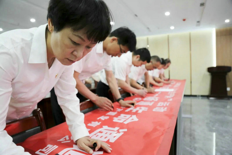 中鐵中產(chǎn)置業(yè)公司按照集團公司和股份公司的統(tǒng)一部署,組織員工進行莊嚴宣誓,在宣誓活動之后中鐵中產(chǎn)置業(yè)公司員工進行了安全生產(chǎn)月簽名儀式。