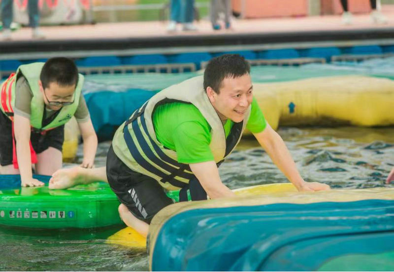 下午,在長壽湖畔進行了“水上智勇大闖關(guān)”,職工與子女一起配合,在水上汽堡進行闖關(guān),用時最短的隊伍獲得游戲的勝利。 “快,加油向前游!”。汽堡周圍不時傳來一陣加油聲。小朋友們與家長配合默契,共同協(xié)作,盡管有些小選手在比賽中暫時落后,但他們并未放棄,盡全力完賽。