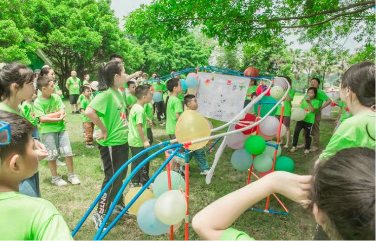 隨后,在教練的指導(dǎo)下,眾人開始了今日的“建橋”任務(wù)——以分組的形式搭建起今天屬于自己的“橋梁”。職工與子女齊心協(xié)力,通過一根根管道構(gòu)建起軌道,由籃球充當(dāng)列車從起點出發(fā),途徑一處處手繪的“夢想”,最終到達(dá)“橋梁”終點。