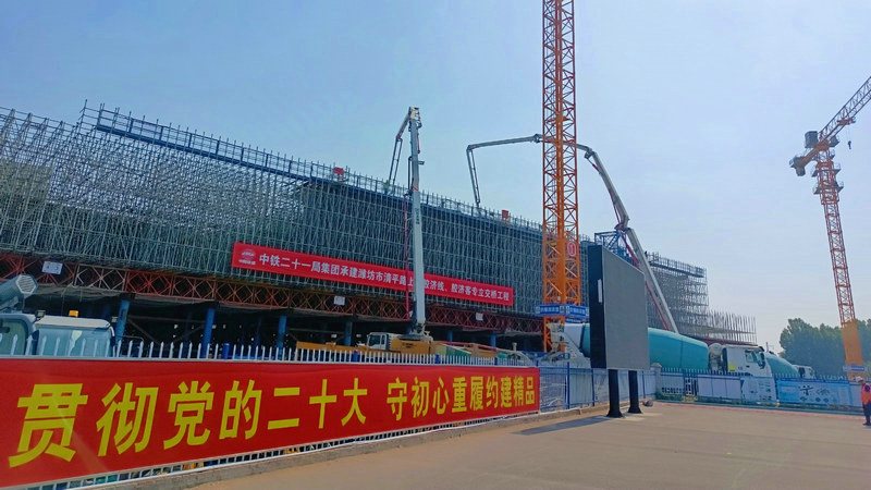 “根據(jù)智慧工地高支模監(jiān)測點(diǎn)數(shù)據(jù)顯示,監(jiān)測到的腹板下立桿軸力最大值為55.26kN,與三維建模計(jì)算數(shù)值基本一致。”劉江龍的話,雖然只有短短幾十字,卻涵蓋了項(xiàng)目全體職工長久以來的磨礪和艱辛。他們在建設(shè)伊始,便按照中國鐵建“數(shù)字鐵建、智慧鐵建”要求,建立了符合本項(xiàng)目實(shí)際的“智慧工地平臺”。正是整個項(xiàng)目團(tuán)隊(duì)精益求精、細(xì)致入微、日復(fù)一日的堅(jiān)持,才有清平路上跨膠濟(jì)線、膠濟(jì)客專立交橋一根根墩柱拔地而起,一座座承臺澆注成形。
