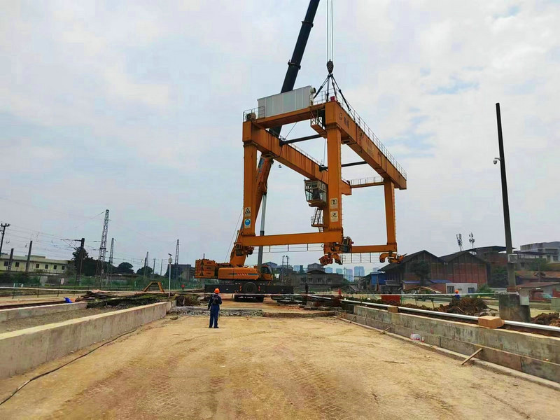 6月14日,在中鐵二十一局一公司承建的成渝線資陽站貨9線集裝箱擴(kuò)能改造工程施工現(xiàn)場(chǎng),重達(dá)66.44噸的龍門吊門架整體吊裝調(diào)頭作業(yè)經(jīng)過20分鐘緊張有序施工,順利達(dá)到整體180度旋轉(zhuǎn)要求,安全高效完成調(diào)頭任務(wù),標(biāo)志著軌道式集裝箱門式起重機(jī)提噸改造工程施工取得階段性勝利。
