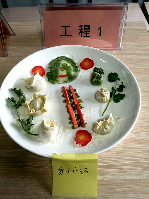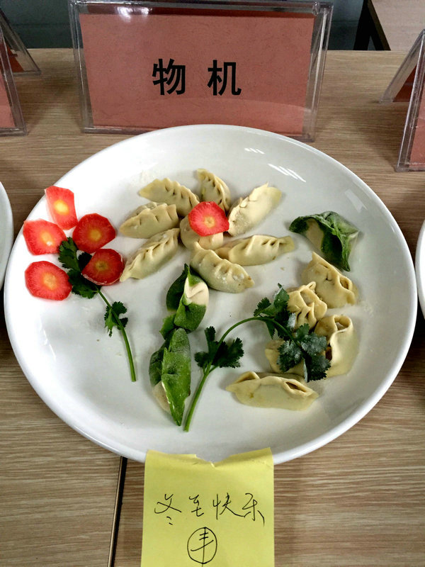 物機部作品 項目部的兄弟姐妹們包出來的餃子真是花樣繁多,創(chuàng)意無限。有敦實厚重的,有別致精巧的,還有四不像的,一排排獨具個性的餃子很快就擺滿了盤子,看著一盤盤別出心裁但都裹滿愛意的餃子,看著一張張掛著面粉但都笑容燦爛的面容,別樣的冬至喜慶連連。