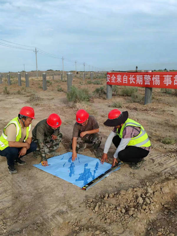 圖為新疆兵團建工市政交通集團天山公司光伏項目負責人、安全員、技術(shù)員等共同審閱圖紙,探討下一步工作計劃,交流現(xiàn)場管理情況。