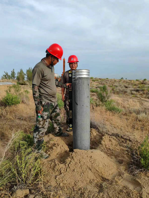 圖為新疆兵團建工市政交通集團天山公司光伏項目對管樁垂直度進行每日抽檢