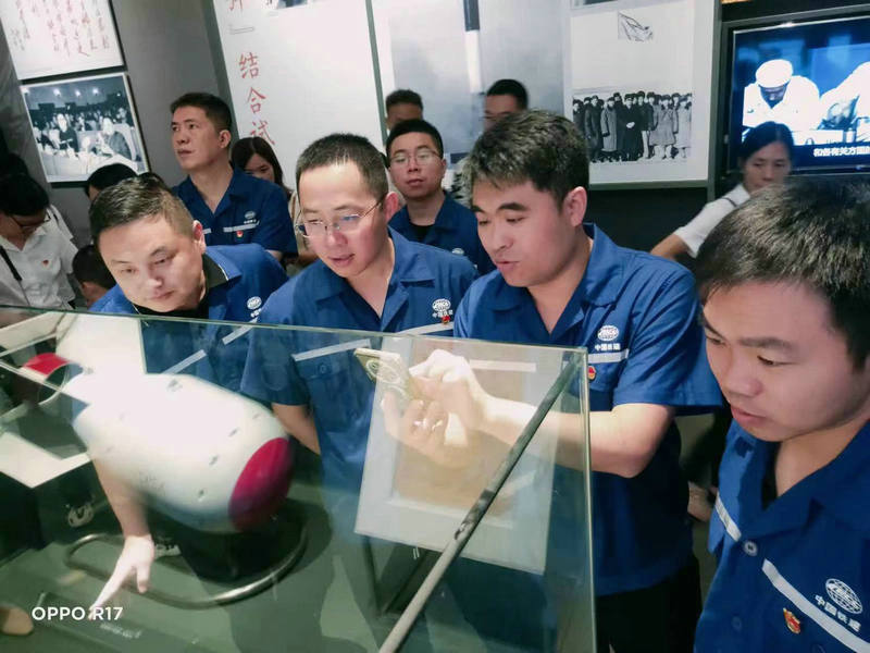 項(xiàng)目黨支部書(shū)記韓崇生(中)項(xiàng)目經(jīng)理阮超(右)全神貫注參觀學(xué)習(xí)