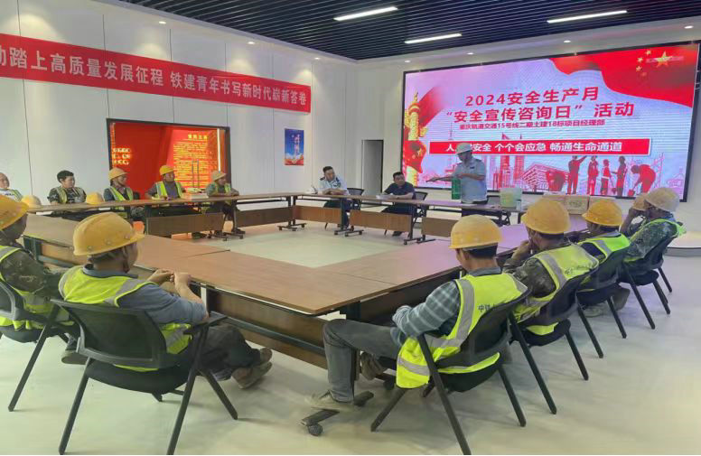 中鐵建重慶軌道交通15號(hào)線二期總承包部按照上級(jí)關(guān)于開展 2024 年全國(guó)“安全生產(chǎn)月”活動(dòng)的部署要求,緊緊圍繞“人人講安全、個(gè)個(gè)會(huì)應(yīng)急--暢通生命通道”的活動(dòng)主題,采取多種形式,扎實(shí)開展“安全生產(chǎn)月”活動(dòng),促進(jìn)了項(xiàng)目安全生產(chǎn)管理水平穩(wěn)步提升,取得了較好成效,為下一步的安全生產(chǎn)打下了堅(jiān)實(shí)的基礎(chǔ)。在活動(dòng)中他們的主要做法是: