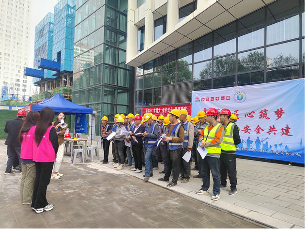 此次活動分為三個部分,首先為工友們宣講了如何預防工地中常見的三種職業(yè)病,包括塵肺病、噪聲性耳聾和接觸性皮炎。其次該團隊為建筑工人測量血壓、心率、血氧、視力等相關健康指標,提供生活方式指導,解答建筑工人健康疑問?;顒咏咏猜暎瑸榱思由罟び褌儗πv知識的記憶,項目部組織了答題答疑環(huán)節(jié),為工友們頒發(fā)了禮品。