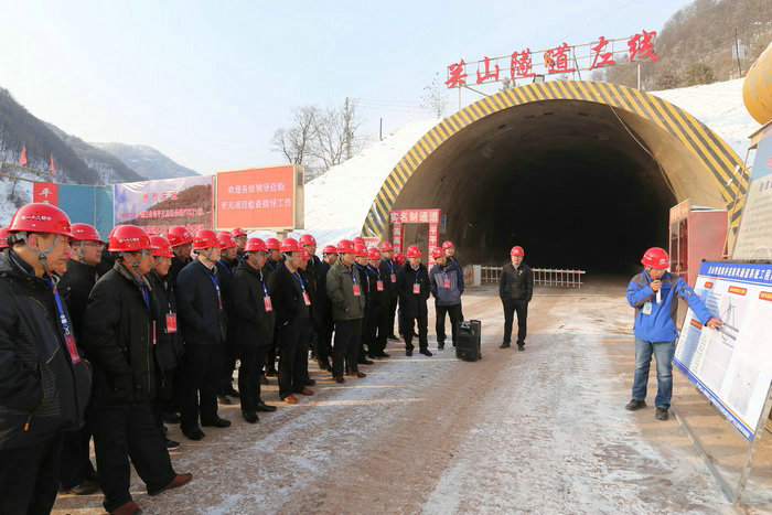 項(xiàng)目部常務(wù)副經(jīng)理、總工程師柳吉煥講解關(guān)山隧道施工情況