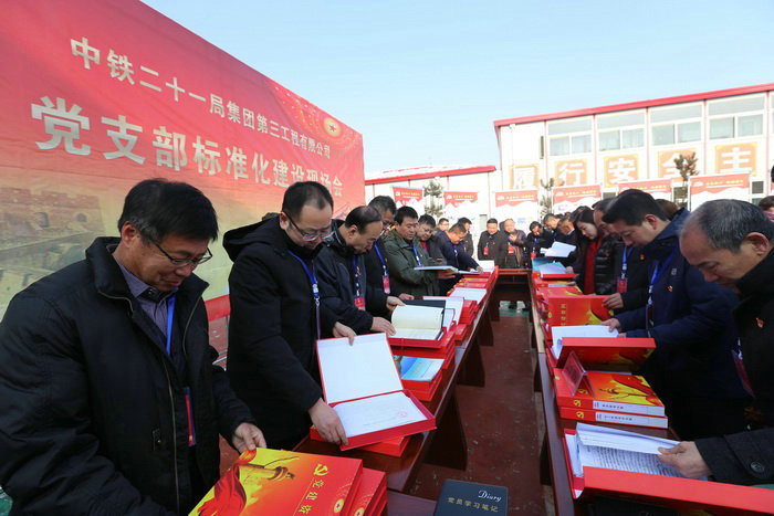 中鐵二十一局三公司黨委組織公司所屬各黨支部(工委)書記、副書記,機(jī)關(guān)黨群部門人員、項(xiàng)目黨員代表共70余人到平天高速項(xiàng)目部,就項(xiàng)目基層黨支部標(biāo)準(zhǔn)化建設(shè)工作進(jìn)行了現(xiàn)場觀摩。
