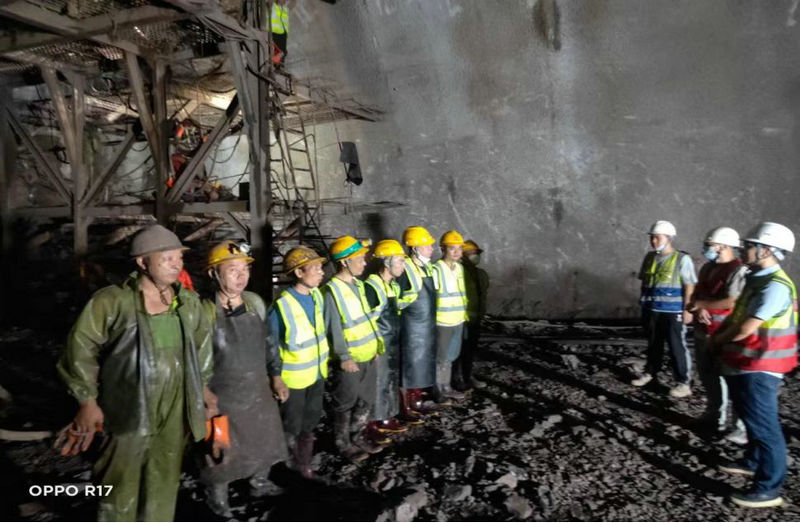 項(xiàng)目部中梁山隧道掘進(jìn)工班在洞內(nèi)進(jìn)行班前安全教育動(dòng)員,鼓舞士氣,增強(qiáng)戰(zhàn)勝困難信心。