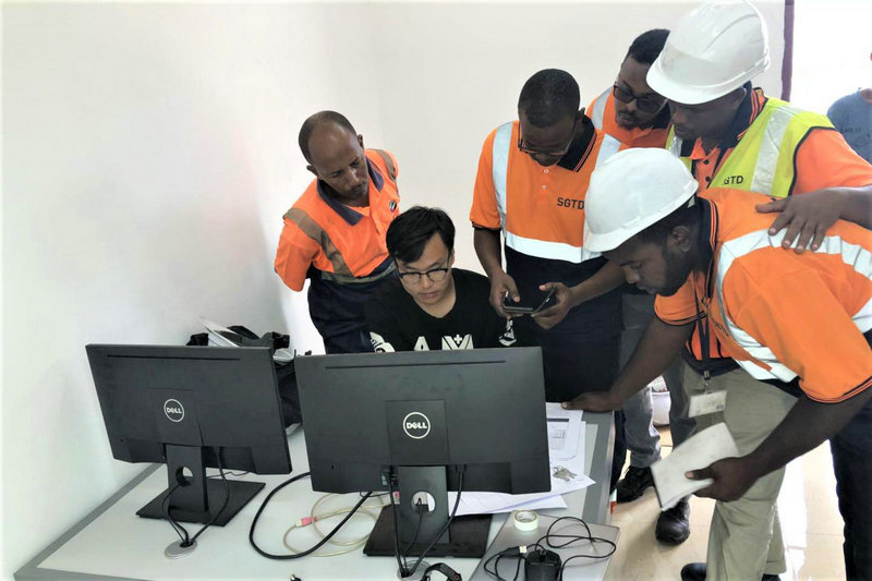 圖三、中鐵建大橋局電氣化公司吉布提DCT鐵路三電項目人員培訓(xùn)當(dāng)?shù)貥I(yè)主進行箱變遠(yuǎn)動控制軟件使用