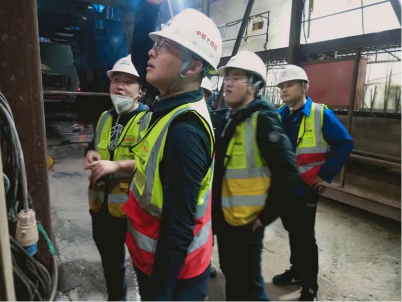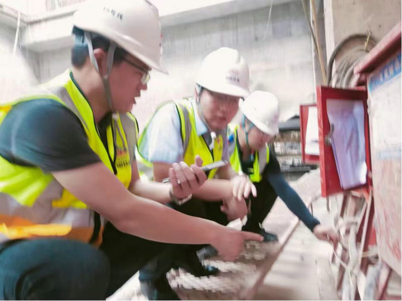 項目副經理宋利(左三)在現場檢查
