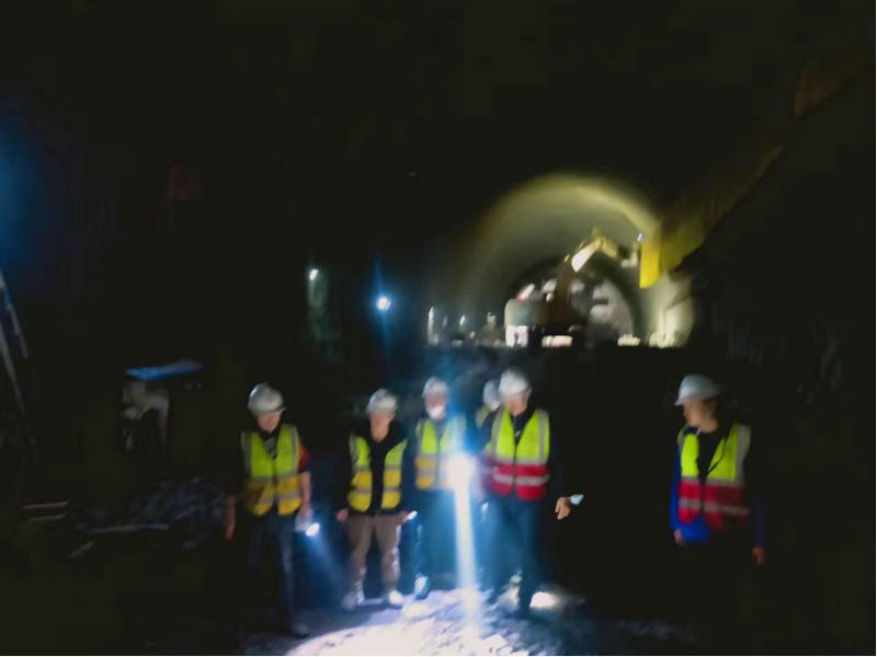 項(xiàng)目經(jīng)理阮超(右二)書(shū)記韓崇生(右一)帶隊(duì)“夜查”、確保工程早會(huì)內(nèi)容與實(shí)際工作不脫節(jié)。