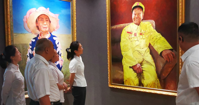 黨員干部們駐足在軍墾老戰(zhàn)士繪畫前久久不愿離去,大家仿佛在追憶老戰(zhàn)士開墾石河子亙古荒原那激情燃燒的歲月。