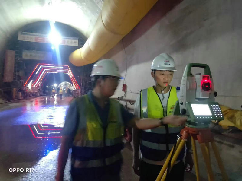 測量人員在中梁山隧道進口精心標高復測