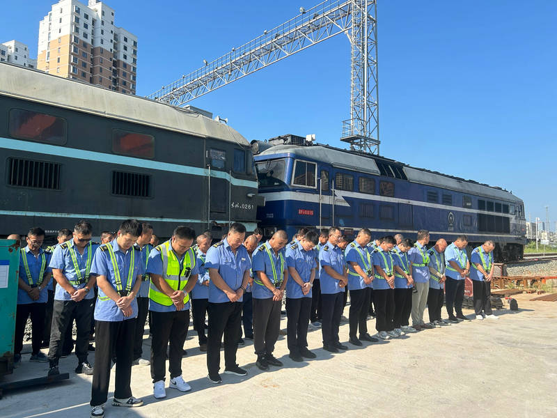 隨著防空警報的響起,全體員工立即停止手中的工作,原地肅立,低下頭,閉上眼睛,開始默哀。默哀期間,現(xiàn)場沒有任何聲響,只有警報的余音在每個人心中回蕩。在這靜默的三分鐘里,時間仿佛凝固,不僅是對先烈的哀思和對那段歷史的沉痛記憶,更是對那段苦難歲月的紀(jì)念,也是對和平的珍視和對未來的期許。最后,全體員工共同唱響了國歌,歌聲激昂而有力,表達(dá)了對偉大祖國的深深熱愛,也彰顯了新時代鐵路人昂揚(yáng)向上的精神風(fēng)貌。隨著國歌的結(jié)束,整個儀式也落下帷幕。