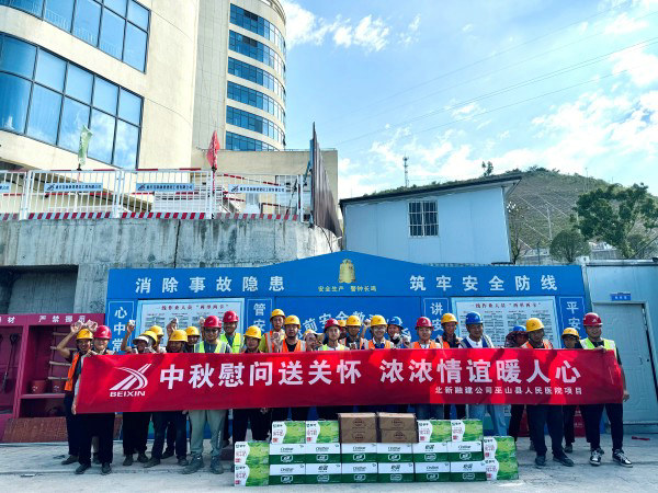 巫山訊(通訊員 陳拉)慰問傳真情,祝福暖人心。在中秋節(jié)到來之際,北新路橋集團(tuán)北新融建公司巫山縣人民醫(yī)院早陽分院二期建設(shè)項(xiàng)目部組織開展了“中秋慰問送關(guān)懷,濃濃情誼暖人心”慰問活動,將節(jié)日祝福和溫情關(guān)懷送到一線工友們手中。