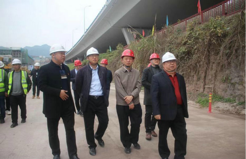 總承包部黨工委書記王向平(右3)與指揮長(zhǎng)李兵(右1)在現(xiàn)場(chǎng)安全質(zhì)量檢查