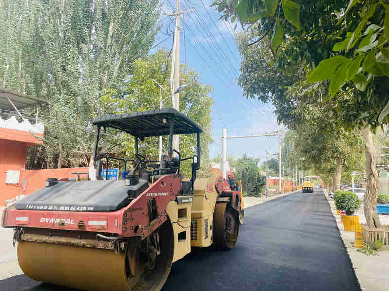圖為:北新路橋集團(tuán)北新巖土和田縣農(nóng)村公路路網(wǎng)建設(shè)項(xiàng)目瀝青路面攤鋪(王澤舒攝)