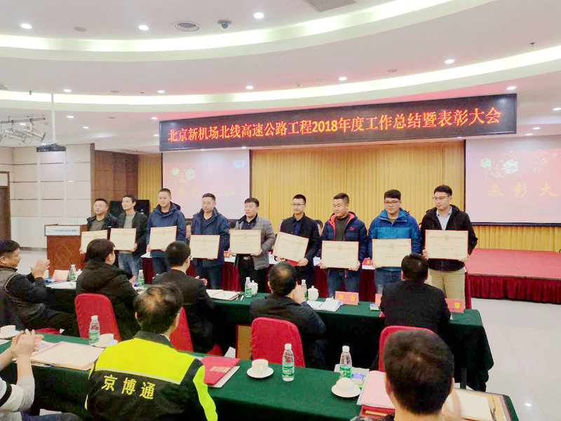 2019年1月21日,興延公司召開“興延高速公路建設(shè)項目暨2018年度總結(jié)表彰座談會”,北京興延高速一標(biāo)項目經(jīng)理部獲得“優(yōu)秀項目經(jīng)理部、征地拆遷先進(jìn)單位、綠色工地稱號”,項目經(jīng)理董鑫獲得“優(yōu)秀項目經(jīng)理”,項目4人次榮獲“安全質(zhì)量管理先進(jìn)個人、項目管理先進(jìn)個人、征地拆遷先進(jìn)個人”榮譽稱號,共計獲得獎金22.8萬元。