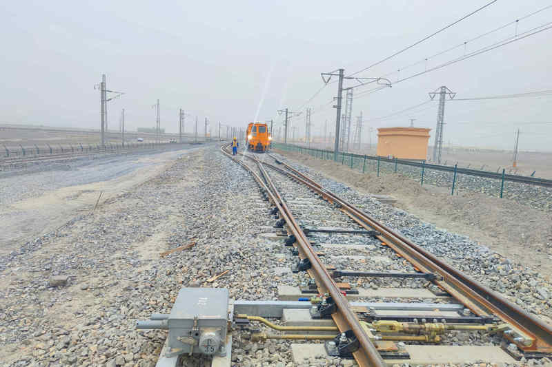 若羌羌盛鐵路專用線自格庫(kù)鐵路若羌站格爾木端咽喉站房對(duì)側(cè)K790+349處接軌引出,沿格庫(kù)鐵路南側(cè)并行1公里后,向南于若羌縣工業(yè)園北側(cè)設(shè)若羌園區(qū)站,線路全長(zhǎng)14.305公里,設(shè)計(jì)時(shí)速80公里。該項(xiàng)目包含路基、橋涵、軌道、站場(chǎng)、房建、給排水、通信、信息、信號(hào)、電力、接觸網(wǎng)、車輛設(shè)備安裝調(diào)試等施工任務(wù)。涉及專業(yè)多、工種多、人員多,“天窗”多,各專業(yè)作業(yè)面交叉施工問題多。項(xiàng)目部通過精心籌劃、合理安排施工任務(wù),優(yōu)化各專業(yè)施工方案等減少施工中影響,保證工期目標(biāo)的實(shí)現(xiàn)。施工中項(xiàng)目部嚴(yán)格審核施工方案,施工前再次確認(rèn)施工方案,落實(shí)危險(xiǎn)作業(yè)流程、安全防護(hù)措施等;施工中,通過領(lǐng)導(dǎo)干部包保、班前講話、帶班作業(yè)、一機(jī)一控等制度加強(qiáng)現(xiàn)場(chǎng)的安全管控,確保施工過程中安全、質(zhì)量受控。