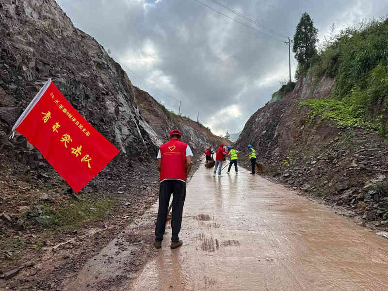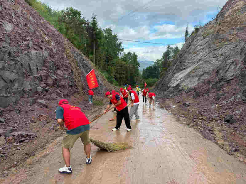 在項目駐地所在戩洲區(qū)域村鎮(zhèn)道路上,項目黨員先鋒隊、青年突擊隊隊員17人,手持鐵鍬、掃把等工具,同心協(xié)力,配合默契,充分發(fā)揮不怕苦、不怕累的實(shí)干精神,清掃路面、撿拾雨后邊坡掉落的碎石、枯枝,清除路肩、邊溝雜草及堆積物,全身心投入到清淤工作中。經(jīng)過2個小時的埋頭苦干,沿途路面煥然一新。
