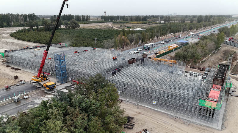 走進(jìn)阿阿高速公路施工現(xiàn)場,機(jī)器、切割、焊接聲此起彼伏,施工車輛往來奔忙,一派熱火朝天的景象。阿拉爾互通2號(hào)橋跨越G580國道,為了確保行車安全,項(xiàng)目部在施工前進(jìn)行施工方案對比,并與交通、交警部門溝通,為保證G580國道車輛行駛安全,最終確定采取現(xiàn)澆梁施工方案,但須封閉G580國道,改移道路,采用滿堂腳手架施工。在施工現(xiàn)場,一輛輛起重機(jī)高聳林立,伴隨著“滴滴”的警示聲,吊臂緩緩起降,將材料轉(zhuǎn)移到指定位置。作業(yè)人員們來回穿梭,有條不紊地搭設(shè)密密麻麻的腳手架,他們嚴(yán)格按照施工方案和技術(shù)交底進(jìn)行作業(yè),該工程成了國道G580上一道靚麗的風(fēng)景線。