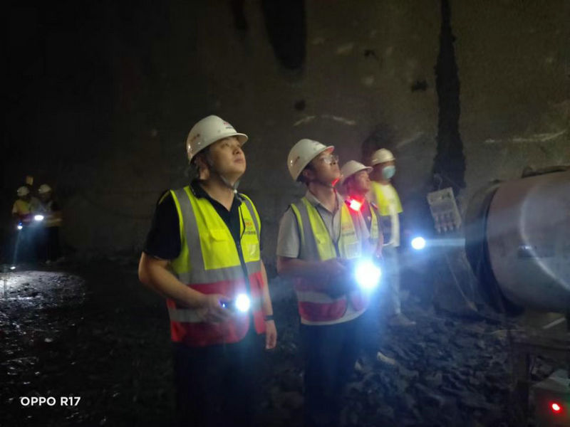 項目書記韓崇生(左1)組織黨員干部融合施工生產(chǎn)堅持帶班“夜查”