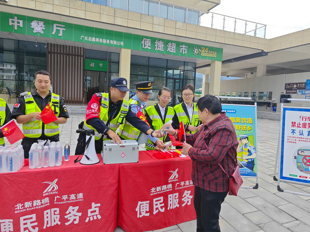 送一份愛心服務(wù)——為老人指路、帶路,幫老人打開水,協(xié)助老人使用服務(wù)區(qū)各類設(shè)施……。廣平高速在服務(wù)區(qū)設(shè)置便民服務(wù)點,在配備雨傘、常用藥品、簡易維修工具的基礎(chǔ)上,特別對老年人群體免費發(fā)放常溫瓶裝飲用水。