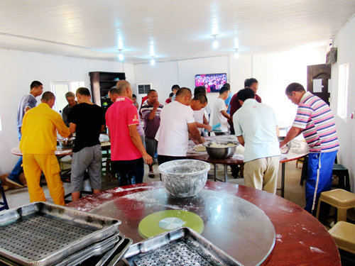 中國鐵路工程建設(shè)網(wǎng)訊(通訊員 鄭建軍)2月5日,是中國人的傳統(tǒng)節(jié)日——春節(jié)。春節(jié)來臨之際,身處尼日利亞拉伊鐵路正常施工的中鐵十二局集團(tuán)一公司四分部員工,貼春聯(lián)、吃餃子、搞聯(lián)歡……彰顯著中國元素的活動和習(xí)俗一樣不少。除正常組織現(xiàn)場施工外,項目部的宿舍和辦公室門口上都貼上春聯(lián)和福字;部分中國員工主動到食堂里包起了餃子;會議室里,一片歡呼,原來這里還在進(jìn)行著撲克和中國象棋的比賽;兩排宿舍的陰涼處,擺滿了各種小獎品,這是正在為套圈有獎活動做準(zhǔn)備;活動室里,乒乓球、臺球比賽正在有序進(jìn)行著;操場上,拔河、羽毛球、籃球比賽已經(jīng)在如期進(jìn)行……在有獎抽券中,特等獎是ipad平板電腦,吸引了眾多員工的目光。食堂門口,還擺放了各種中國風(fēng)味兒的瓜子、花生、糖果等等豐富的小吃。項目部的大院里,歡呼聲、喝彩聲、鼓掌聲,真是此起彼伏,讓人感覺到:雖然身在海外,但中國元素的春節(jié)就在身邊!