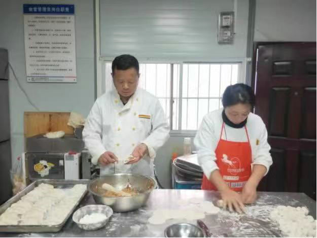 項(xiàng)目部員工不僅早餐吃上自制的手搟面、水餃、與餛飩、油餅、油條等,中晚餐吃上四喜丸子、川菜麻辣鍋菜、毛血旺、紅燒肉、扣肉等南北大菜