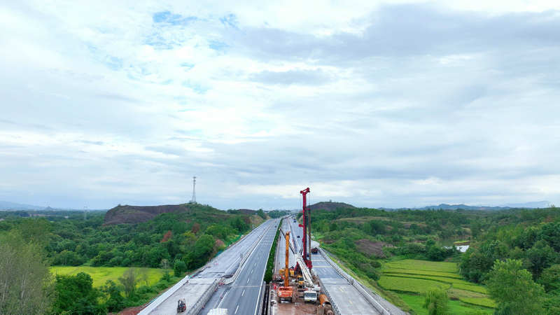 滬昆高速梨東改擴建B1標項目上畈河大橋航拍照片