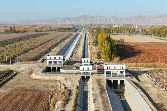 新疆圖木舒克市前??偢汕m(xù)建工程位于前海灌區(qū),屬葉爾羌河流域,控制灌溉面積為72.43萬畝,設(shè)計(jì)流量為35.8立方米每秒。主要施工內(nèi)容為新建輸水干渠9.41公里,改擴(kuò)建輸水干渠10.67公里,新建庫外渠21.37公里;新建渠系建筑物44座,其中水閘9座,涵洞2座,倒虹吸5座,公路橋8座,農(nóng)橋9座,渡槽3座,測(cè)流橋8座;拆除重建渠系建筑物34座,水閘24座,交通橋2座,農(nóng)橋7座,灌溉沉砂池1座。本工程屬Ⅱ等大(2)型工程,工程級(jí)別為3級(jí),主要建筑物為3級(jí),次要建筑物為4級(jí)。防洪標(biāo)準(zhǔn)為20年一遇,計(jì)劃工期730天。