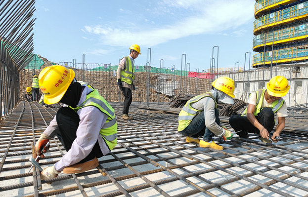 施工班組黨員綁扎鋼筋 贠煥軍攝