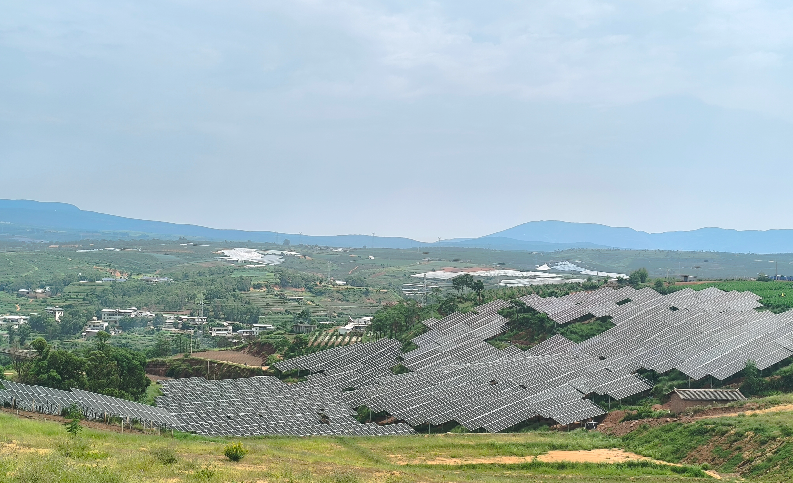 新疆兵團(tuán)建工集團(tuán)市政軌道交通集團(tuán)華東分公司勐蓮50MW光伏電站組件安裝完成實(shí)景圖
