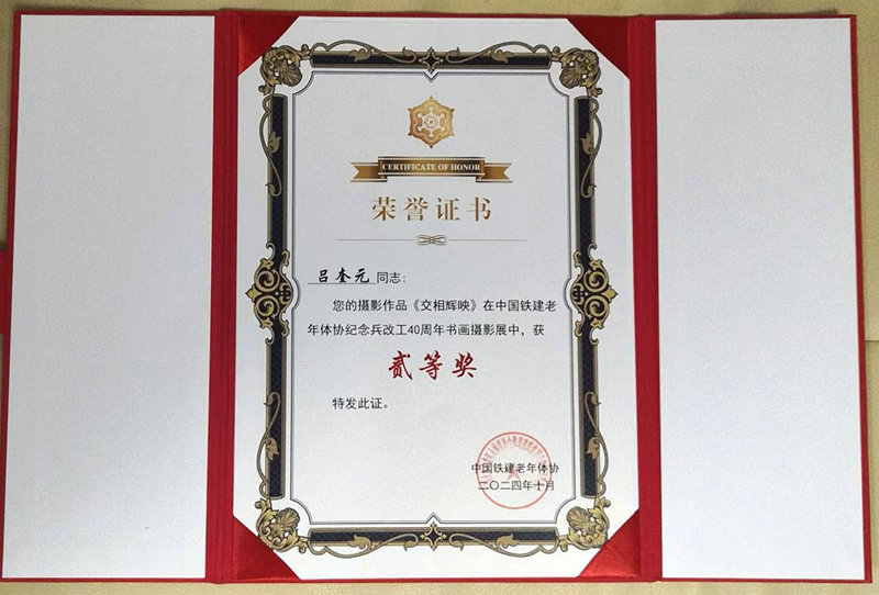 鐵路工程建設(shè)網(wǎng)訊(特約通訊員 王詩(shī)迪)近日,著名作家、詩(shī)人、新聞工作者、資深攝影人、原中鐵十五局集團(tuán)項(xiàng)目書(shū)記、現(xiàn)為企業(yè)文化顧問(wèn)的呂奎元先生,在中國(guó)鐵建股份有限公司老年體協(xié)書(shū)畫(huà)攝影大賽中榮獲攝影類二等獎(jiǎng),展現(xiàn)了他卓越的才華和深厚的藝術(shù)功底,這是對(duì)他深入生活、扎根基層攝影藝術(shù)創(chuàng)作的充分肯定。