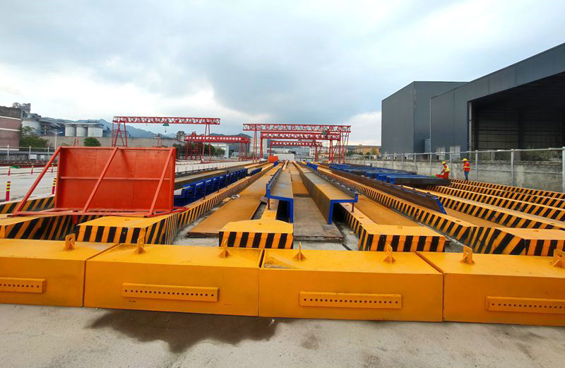該梁場按國家有關(guān)設(shè)計(jì)標(biāo)準(zhǔn)設(shè)置防排水、電力、消防等設(shè)施。同時(shí)安裝智能張拉機(jī)、真空壓漿機(jī)各一套,80噸、70噸、10噸龍門吊各2臺(tái),定型鋼模板13套,噴淋養(yǎng)護(hù)系統(tǒng)2套,配電設(shè)備、視頻監(jiān)控設(shè)備各1套,以及柴油發(fā)電機(jī)等,制梁、吊裝、電力等各種設(shè)備應(yīng)有盡有。