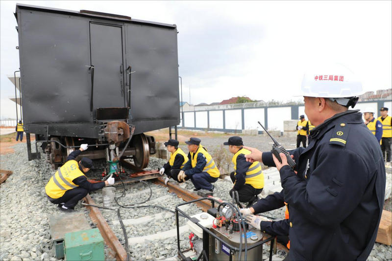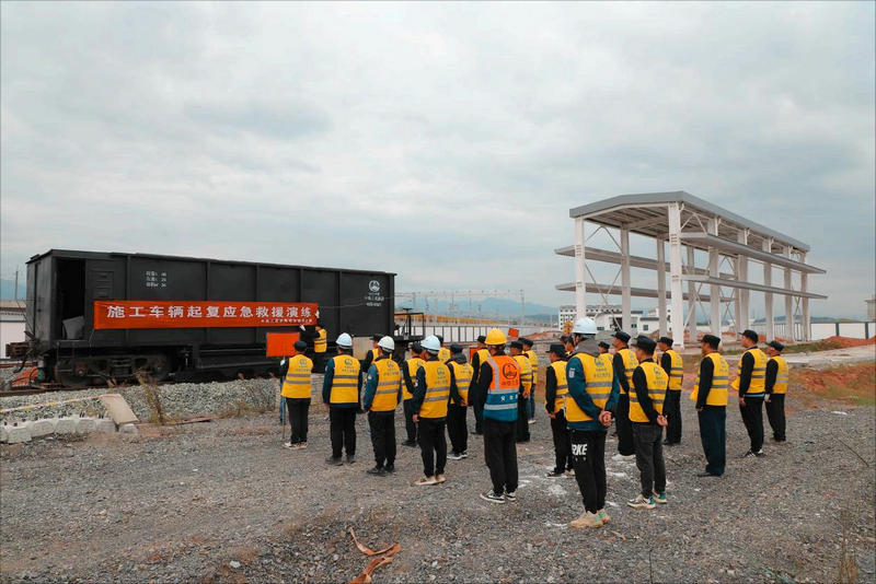 11月18日,中鐵三局線橋公司運輸分公司杭衢鐵路運輸作業(yè)隊組織開展施工車輛起復救援應急演練。