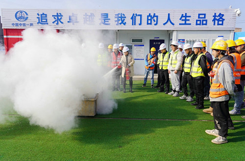 隨后,線下參加培訓(xùn)的人員一同來到項(xiàng)目駐地開展了消防安全實(shí)地培訓(xùn)。在現(xiàn)場(chǎng),老師深入淺出地講解滅火器的使用方法并介紹消防站內(nèi)各項(xiàng)消防物資,使職工及一線工友們認(rèn)識(shí)到消防安全的重要性,增強(qiáng)了自救自護(hù)的能力。