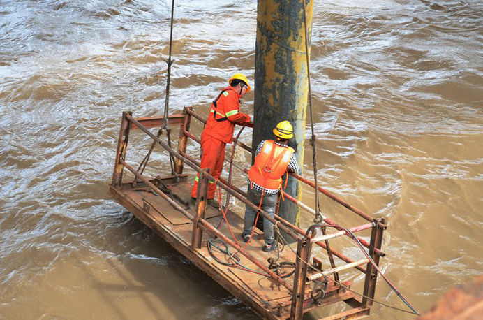 隨著杭甬高速一期通車運營,該公司增加人力和設(shè)備,加快了海上鋼棧橋拆除步伐。由于插入海底的棧橋鋼管長期遭受海水的侵蝕,當(dāng)初打入海下一根38米的鋼管只需20分鐘,拆除時最快也要1小時。幾年來,在項目部的科學(xué)管理下,棧橋隊?wèi)?zhàn)勝8次超強臺風(fēng)襲擊,順利完成14600米棧橋建、拆任務(wù)。