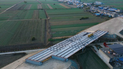 “X312二號(hào)分離式立交橋位于團(tuán)結(jié)村東側(cè),共架設(shè)30米預(yù)制箱梁24片。為確保箱梁成功架設(shè),宿固6標(biāo)項(xiàng)目部嚴(yán)格落實(shí)“精品工程創(chuàng)建”等相關(guān)要求,由項(xiàng)目技術(shù)負(fù)責(zé)人組織各個(gè)部門分別對(duì)施工技術(shù)方案、梁體尺寸復(fù)測(cè)、高程線位校對(duì)、安全保障措施等進(jìn)行反復(fù)研討形成架梁專項(xiàng)方案并通過(guò)專家評(píng)審,優(yōu)化工序銜接流程,施工人員規(guī)范操作、密切配合,技術(shù)負(fù)責(zé)人動(dòng)態(tài)跟蹤、實(shí)時(shí)控制,抓好箱梁架設(shè)過(guò)程中運(yùn)輸、吊裝、架設(shè)等重點(diǎn)工序銜接,施工過(guò)程中全程監(jiān)督,并在施工現(xiàn)場(chǎng)顯著位置設(shè)置安全警示牌和標(biāo)語(yǔ),全力確保了箱梁架設(shè)工作安全、平穩(wěn)完成。”項(xiàng)目負(fù)責(zé)人說(shuō)道。