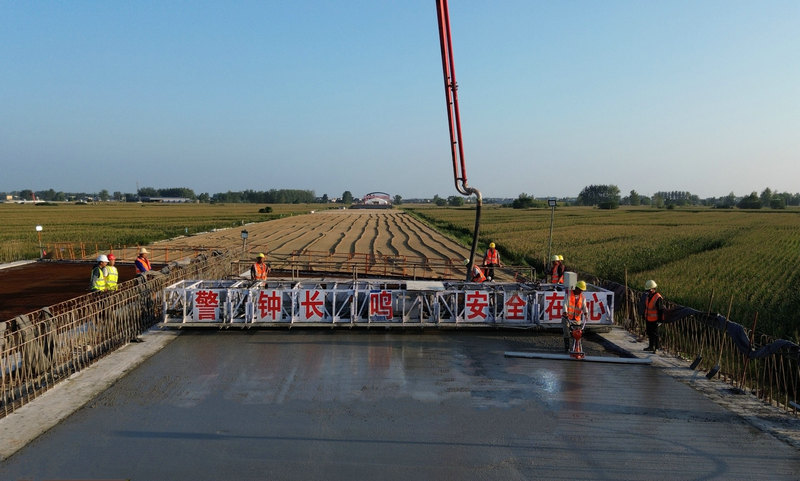 2024年9月9日,隨著最后一方混凝土澆筑完成,安徽宿固6標(biāo)項(xiàng)目K36+736通道橋橋面鋪裝施工圓滿完成,為項(xiàng)目的整體推進(jìn)注入了新的活力。首座橋梁的鋪裝完成不僅標(biāo)志著項(xiàng)目正式進(jìn)入橋面施工的新階段,更為年度目標(biāo)實(shí)現(xiàn)奠定了堅(jiān)實(shí)的基礎(chǔ)。