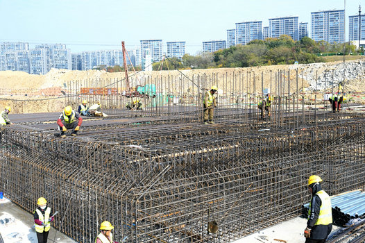導(dǎo)流墻底層澆注混凝土 吳展輝攝