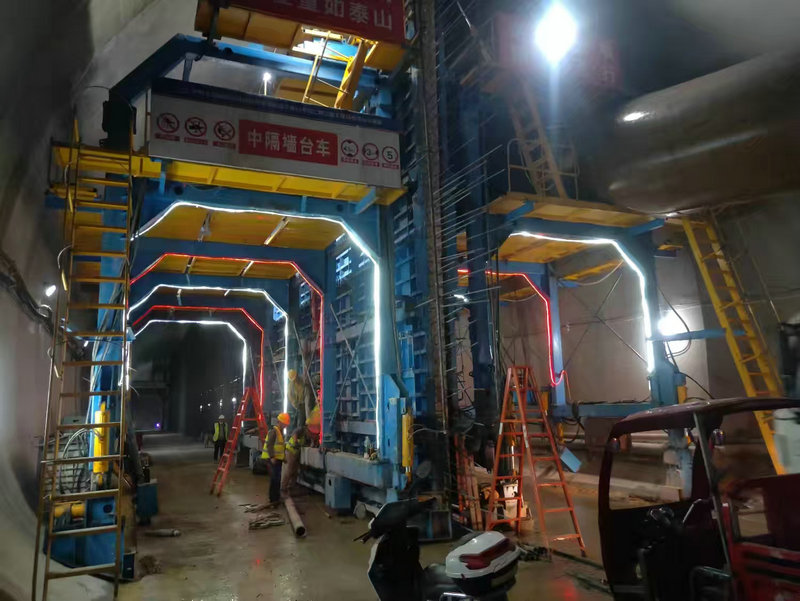 中鐵建重慶軌道交通15號(hào)線二期總承包部16標(biāo)中梁山隧道單洞雙線首模中隔墻澆筑完成
