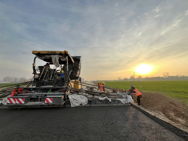 圖說:2024年12月14日安徽固鎮(zhèn)EPC市政項目緯四東路水泥穩(wěn)定碎石下基層攤鋪施工 善忠俊攝