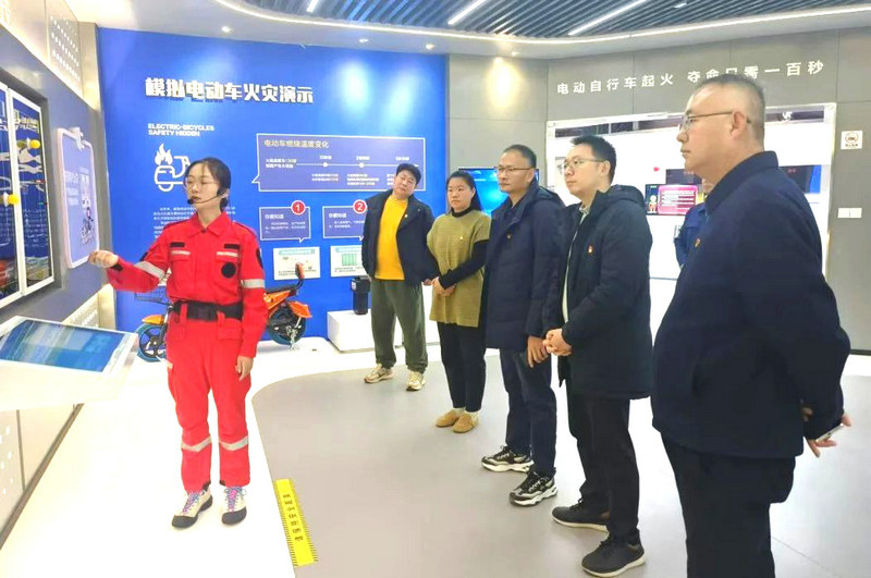 該公司副總經(jīng)理、上海片區(qū)負責人丁向兵與書院鎮(zhèn)黨委委員、紀委書記蔡峰,棉場村黨支部書記黃怡婷一行首先參觀了南匯鎮(zhèn)消防體驗中心,了解了全息影院、家庭廚房、電動自行車火災(zāi)的實景演示,建筑火災(zāi)消防聯(lián)動系統(tǒng)以及繩結(jié)制作、煙霧逃生、“119”實景出警等展區(qū)的功能作用。