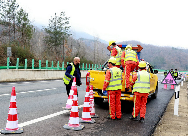 在現(xiàn)場(chǎng)處置的同時(shí),高速入口收費(fèi)站工作人員做好滯留車輛疏導(dǎo)、人員安撫工作,“一路三方”聯(lián)合黨員突擊隊(duì)和團(tuán)員青年編成第二梯隊(duì)做好增援準(zhǔn)備。
