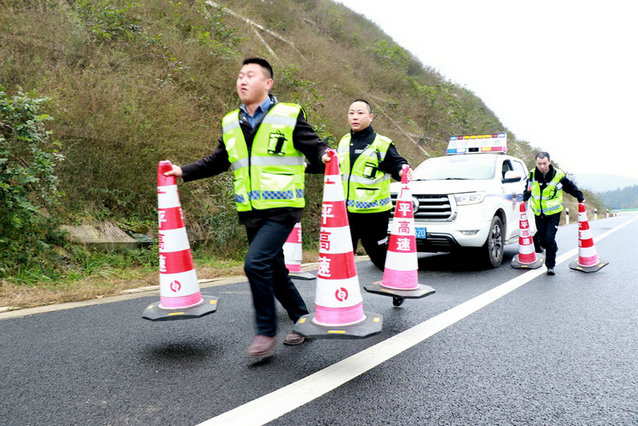 接到報(bào)警電話后,廣平高速監(jiān)控中心立即調(diào)出事故現(xiàn)場(chǎng)畫面,經(jīng)初步研判后啟動(dòng)應(yīng)急處置預(yù)案;“一路三方”值班領(lǐng)導(dǎo)迅速到達(dá)監(jiān)控中心聯(lián)合指揮,封控、救援、清障等應(yīng)急力量緊急向事故現(xiàn)場(chǎng)開進(jìn)。封控小組先行一步,臨時(shí)封閉高速入口,在事故現(xiàn)場(chǎng)后方設(shè)置警示標(biāo)志,為后續(xù)行動(dòng)留下安全空間;救援小組按照“先人、再車、后設(shè)施”順序,檢查人員傷亡和車輛、路面設(shè)施受損情況,做好現(xiàn)場(chǎng)應(yīng)急處理和后送醫(yī)院準(zhǔn)備;清障小組到達(dá)后,拖走事故車輛,人工與機(jī)械結(jié)合清理路面積雪結(jié)冰、布撒融雪劑,維修護(hù)欄。